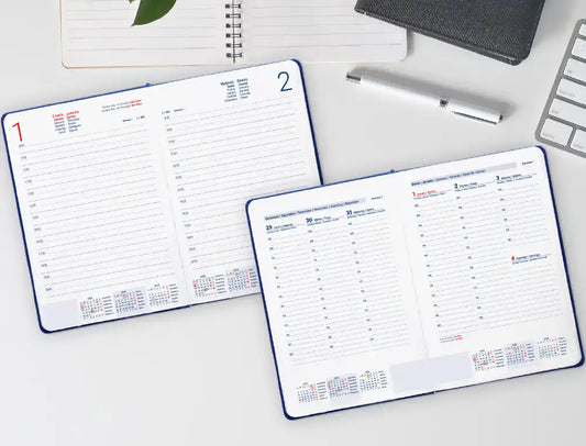 Esta agenda compacta e encadernada foi concebida para facilitar a organização diária com um formato que exibe um dia por página. A sua capa vermelha confere-lhe um aspeto vibrante e profissional, enquanto o seu papel de 60 gramas com certificação FSC garante um equilíbrio entre qualidade e respeito pelo ambiente.