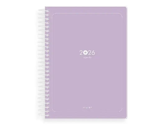 A Agenda Espiral ANTARTIK Essentials A5+ 2026 Day-Page é uma ferramenta concebida para quem procura uma agenda funcional e elegante. O seu tamanho A5+ oferece um espaço amplo e prático, ideal para organizar confortavelmente cada dia do ano. O design roxo confere um toque moderno e distinto, enquanto a encadernação em espiral facilita a abertura total para uma escrita sem restrições.