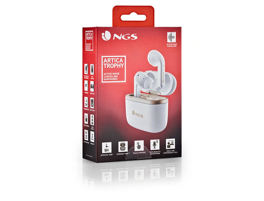 Auricular ngs artica trophy sem fios alcance 10 m base de carga controlo tatil autonomia 20 horas usb-c cor branco.