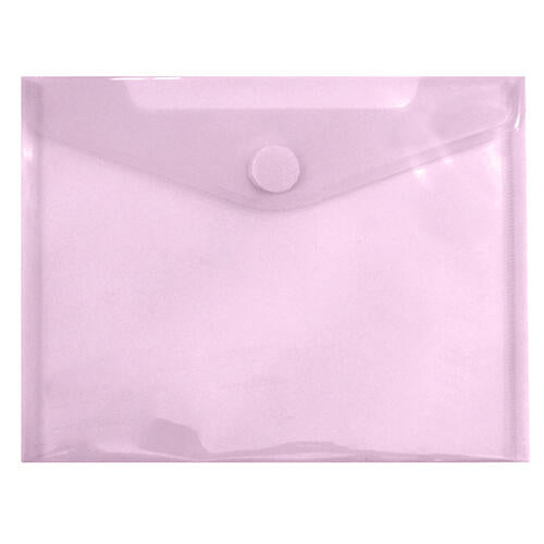 Bolsa em plástico transparente mate tipo envelope com abertura no topo.Fecho em velcro redonda plástica sobre pressão.Para documentos formato A5.Disponível em várias cores translúcidas.