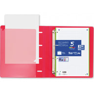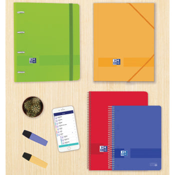 Extra resistente e leve graças ao material com que é feito. A abertura a 360º permite-lhe poupar espaço na secretária ou escrever utilizando-a como suporte. Esqueça furar todos os documentos ou perder as fotocópias graças à sua bolsa interna para documentos. É ideal para quem deseja transportar as suas notas de forma ordenada, pois pode ser transportado confortavelmente e também possui uma largura especial para incorporar divisórias e capas. Esta pasta com refill tem um fecho de elástico que combina com a tampa. Inclui uma substituição de folhas e 1 Linha com faixas coloridas. O papel é OptikPaper®: a tinta não passa. O refill é compatível com o aplicativo Scribzee para que possa digitalizar e compartilhar as suas anotações. Capas em Polyfoam: extra resistentes e leves. Abertura 360º que permite poupar espaço ou utilizar como suporte de escrita. Bolsa de documentos dentro da tampa para folhas não perfuradas. Fecho de elástico a condizer. Largura especial para divisórias e tampas. Recarga Pautada com Optik Paper®, extra resistente, a tinta não passa. Pasta de argolas com reposição. Tampa plástica de poliespuma opaca. Inclui Recarga Pautada Oxford com faixas coloridas de folhas com 1 linha no interior. 4 anéis de 35 mm. Medidas lombada : 40 mm. Disponível nas cores: Preto, Aqua, Verde Maçã, Pêssego e Vermelho (entrega aleatória)