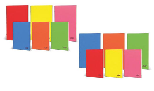 Conjunto de 6 cadernos A5 Pautados com cores sortidas.