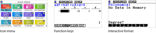 O visor a cores de alta resolucao, permite inserir e exibir fracoes, raizes quadradas e outras expressoes numericas tal como aparecem num livro de texto.