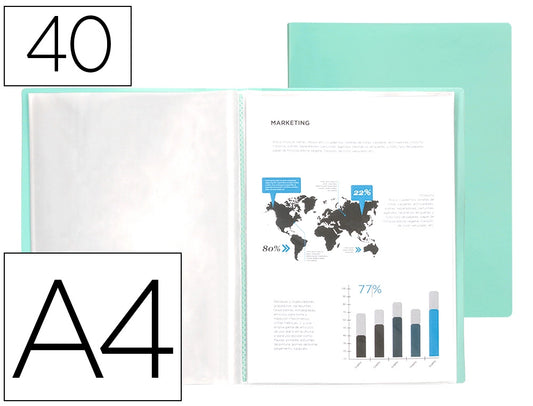 Portfólio A4 40 Bolsas Verde Pastel Opaco