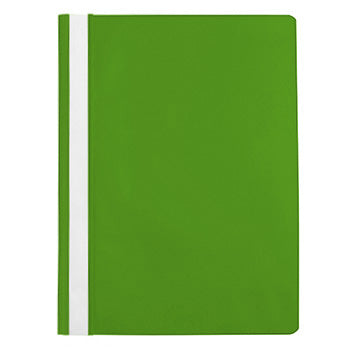 Fabricado em polipropileno, formato A4, com ferragem, capa transparente e contracapa opaca. Identificador na lombada.