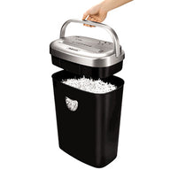 Triturador com capacidade de CD para uso em casa/ escritório doméstico. Destrói 10 folhas por passagem em partículas de corte transversal de 4x35mm (Nível de Segurança P-4). Caixa de 23 litros com cabeçote de levantamento. Destrói grampos, pequenos clipes de papel, cartões de crédito e CDs. Para uso individual.