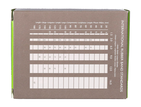 80% de borracha de alta qualidade e grande resistência. Apresentam-se em caixa o que facilita a sua conservação e armazenamento. A caixa de elásticos.