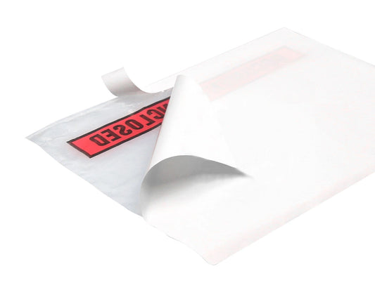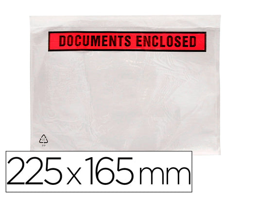 Envelope autoadesivo q-connect porta documentos multilingue 225x165 mm sem janela pack de 100 unidades. Envelope autoadesivo para o envio de documentos. Texto em inglês. Totalmente transparente, sem janela, com impressão em preto e vermelho. O pack de envelopes.