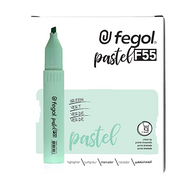 Marcador de fibra, tinta fluorescente cor pastel à base de água de alta luminosidade. Corpo em PP, opaco, fino, tampa ventilada.
