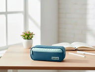 Este estojo azul-escuro com três fechos e um bolso frontal é uma solução prática e funcional para organizar os seus materiais escolares ou de escritório. O seu design compacto e resistente permite armazenar facilmente diversos artigos, mantendo-os protegidos e acessíveis ao longo do dia.