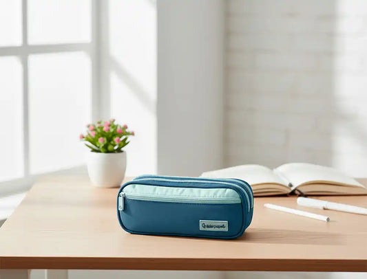 Compartimentos: Três secções separadas com fecho que facilitam a organização e o acesso rápido a lápis, canetas, réguas e outros acessórios.