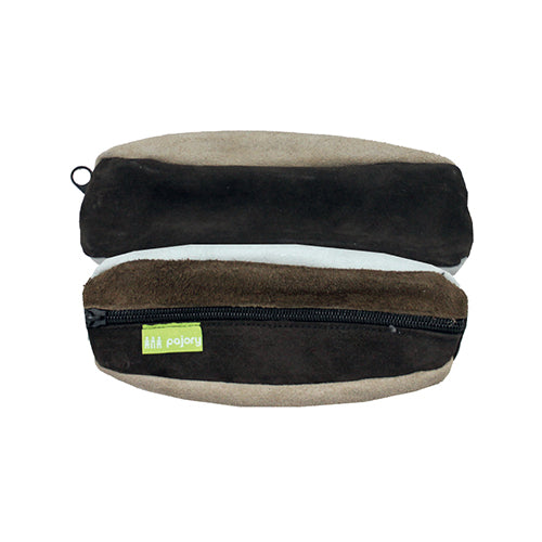 Bolsa para transportar e guardar artigos de pequeno tamanho. Fabrico em pele, muito prático, com design moderno e apelativo. Fecho em zipper metálico.