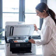 Impressora multifunções profissional A4 com impressão até A3, visor tátil a cores de 6,8cm e capacidade para 250 folhas de papel. Frente e verso automático de impressão até A4. Com uma velocidade de impressão de 28ppm a preto e cores (ISO 24734), e um tempo de impressão da primeira página inferior a 5 segundos (ISO 17629), conseguirá documentos de grande qualidade e sem complicações. Conexão por Ethernet ou WiFi. Pensada para satisfazer as necessidades de pequenos grupos de trabalho. Impressora A3 | Copiadora A4 | Scanner A4 | Fax A4 Impressora multifunções de tinta profissional A4/A3, WiFi, impressão até A3 e impressão automática em frente e verso até A4. 28ppm - Visor tátil 6,8cm - Bandeja 250 folhas - ADF 50 folhas A4 Geral Tipo de impressora: A cores Funções: Impressão, Cópia e digitalização, Fax Visor táctil a cores Tamanho do visor: 6.8cm Tamanho máximo de papel: A3 Memória: 256MB Tecnologia: Jato de tinta Brother Apps Creative Center: Sim Easy Scan to Email: Sim Enlarge Text Copy: Sim Fax Forward to Cloud: Sim Note Scan: Sim Scan to Mobile: Sim Scan to Searchable PDF: Sim Conetividade Conetividade: Rede cablada, WiFi, USB Interface local: Hi-Speed USB 2.0, USB 2.0 Host (Front) NFC: Não Wi-Fi Direct: Imprime sem fios sem ter que passar por um ponto de acesso wireless (aceita métodos manuais e automáticos) Interface de rede com fios: Ethernet 10/100BASE-TX Interface de rede sem fios: 2.4GHz IEEE 802.11 b/g/n & 5GHz IEEE 802.11a/n Ligação a dispositivos móveis Suportado: Brother Mobile Connect, AirPrint, Mopria, Brother Print Service Plugin Cópia Cópia frente e verso: Não Resolução: Até 600x600ppp Velocidade: 1 face: 25/16 ppm (preto/cores) Ampliação/redução: Reduz ou amplia o tamanho do documento, de 25% a 400%, em incrementos de 1% N em 1: Sim Dimensões e pesos Com caixa de embalagem: 636 (L) x 468 (P) x 419 (A)mm | 19.2kg Sem caixa de embalagem: 530 (L) x 398 (P) x 305 (A)mm | 17.0kg Envio/receção de faxes Fax modem: 14.4 kbps PC Fax: Sim. Envia e recebe faxes diretamente do PC Ambiente Humidade de funcionamento: 20-80% Temperatura de funcionamento: 10-35 Celsius Potência sonora: Preto: 6.78B(A), Cores: 6.82B(A) Pressão sonora: Impressão PC (Cores/Preto): Aprox. 51,5dB(A) Informações ambientais Acreditação ecológica ? Blue Angel: Sim Acreditação ecológica ? Nordic Swan: Sim Consumo de energia: A imprimir: Aprox. 36W | Pronta: Aprox. 5.5W | A hibernar: Aprox. 0.9W | Desligada: Aprox. 0,03W Consumo elétrico típico: 0.17 kWh/semana Especificações do papel Tipos e tamanhos: Bandeja standard: Normal, Jato de tinta, Glossy, Reciclado 64-220g/m2 | Bandeja inferior: Normal, Reciclado 64-120g/m2 | Ranhura de Alimentação Manual: Normal, jato de tinta, Glossy, Reciclado 64-220g/m2 (260g/m2 com papel glossy Brother BP71) | ADF: Normal, Reciclado 64-120g/m2 | Duplex automático: Normal, Reciclado 64-120g/m2 Manuseamento de papel Alimentação de papel: Bandeja standard: 250 folhas | Ranhura de alimentação Manual: 1 folha | Alimentador automático de documentos (ADF): 50 folhas; calculado com papel de 80g/m2 Saída de papel: 100 folhas A4 | 50 folhas A3; calculado com papel de 80g/m2 Rede Wi-Fi Direct?: Sim Rede com fios: Ethernet 10/100BASE-TX Segurança da rede com fios: APOP, SMTP-AUTH, SSL/TLS (IPPS, HTTPS,FTPS, SMTP, POP3, IMAP4), SNMP v3 802.1x (EAP-MD5, EAP-FAST, PEAP, EAP-TLS, EAP-TTLS), Kerberos, IPsec Rede sem fios: 2.4GHz Infrastructure Mode: IEEE 802.11 b/g/n | Wi-Fi Direct: IEEE 802.11 g/n & 5GHz Infrastructure Mode: IEEE 802.11 a/n | Wi-Fi Direct: IEEE 802.11 a/n Segurança da rede sem fios: APOP, SMTP-AUTH, SSL/TLS (IPPS, HTTPS,FTPS, SMTP, POP3, IMAP4), SNMP v3, 802.1x (EAP-FAST, PEAP, EAP-TLS, EAP-TTLS), Kerberos, IPsec | WEP 64/128 bit, WPA-PSK (TKIP/AES), WPA2-PSK (TKIP/AES), WPA3-SAE (AES) *Wi-Fi Direct supports WPA2-PSK (AES) only Suporte de configuração sem fios: Sim Sistemas operativos e software Software incluído ? Mac.: Brother iPrint&Scan Software incluído ? Windows: Brother iPrint&Scan, BRAdmin Professional, Mass Deployment Tool, Status Monitor Suportado: Windows®: 10, 8, 7 (32 & 64 bit editions), Windows® Server: 2019, 2016, 2012 2012R2, 2008R2 & 2008 (32 & 64 bit editions) | macOS: 10.14.6/10.15.x/11 | Linux: CUPS, LPD/LPRng (32 & 64 bit editions) | ChromeOS: Print Impressão Velocidade de impressão nos 2 lados, formato A4: Até 21 páginas por minuto Velocidade de impressão normal, formato A4: Até 28 páginas por minuto Resolução: Até 1200x 4800 dpi (Horizontal x Vertical) Impressão nos 2 lados automática: Sim Tempo de impressão da primeira página: Menos de 4.6 segundos Volume mensal recomendado: 2500 páginas Digitalização Digitalização frente e verso: Não Resolução: Desde vidro: 1200 x 2400ppp (preto) / 1200 x 1200ppp (cores) | Desde ADF: 600 x 600ppp (preto/cores) Digitalização para. Imagem, OCR, arquivo, rede, FTP, SharePoint, Email (com servidor), PDF com capacidade de pesquisa Velocidade: 1-face A4: 25ppm (preto e cores) Tipo de digitalizador: CIS Funções de segurança 802.1x, Automatic Intrusion Detection, Digitally-signed Firmware, Filtro de IP, Port based Network Access Control, Secure Function Lock (bloqueio seguro de funções) v3, Impressão segura com SSL Consumíveis e acessórios Cartuchos de tinta de alto rendimento LC422XLBK (preto) ? 3000 páginas; LC422XLC (cião) - 1500 páginas; LC422XLM (magenta) - 1500 páginas; LC422XLY (amarelo) - 1500 páginas | Declarado segundo ISO/IEC 24711 Cartuchos de tinta de rendimento normal LC422BK (preto) ? 550 páginas; LC422C (cião) - 550 páginas; LC422M (magenta) - 550 páginas; LC422Y (amarelo) - 550 páginas | Declarado segundo ISO/IEC 24711 Consumíveis Produto enviado com tinteiros LC422. A primeira vez que instalar um conjunto de tinteiros, a máquina utilizará uma quantidade de tinta para preencher os tubos de saída para obter impressões de alta qualidade. Este processo apenas ocorrerá uma vez. A quantid