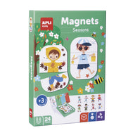 Jogo magnético das estações do ano para aprender as estações criando diferentes combinações de roupas de acordo com a época do ano. Design exclusivo APLI Kids com ilustrações originais e coloridas.