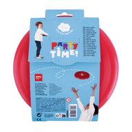 Jogo do disco voador da coleção Party Time. Consiste em lançar um disco de plástico, arredondado e liso, pelo ar, com o objetivo de ser apanhado por outro jogador. Ideal para brincar ao ar livre, no quintal ou no jardim, ajuda a criança a exercitar-se e a manter-se em forma. É um jogo de animação e aventura que ajudará as crianças a relacionarem-se umas com as outras. Idade Recomendada: +4 anos.