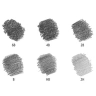 6 lápis 2H, HB, B, 2B, 4B, 6B
