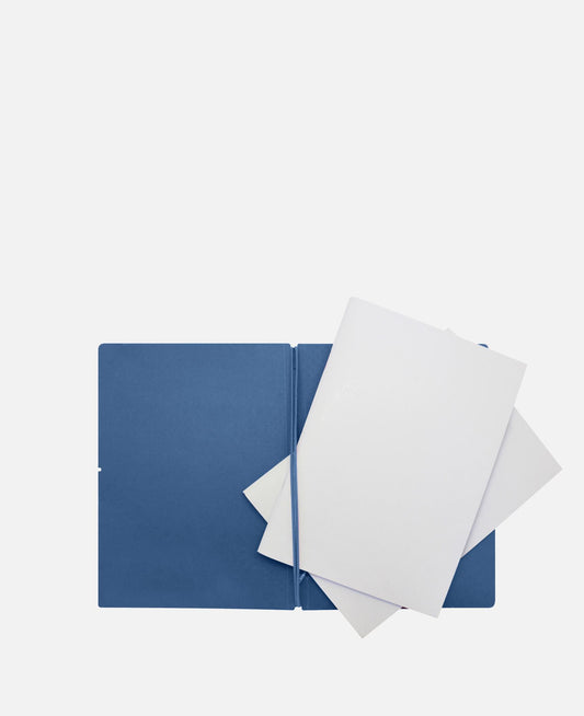 Capa com 2 cadernos agrafados A5 no interior 1 pautado + 1 liso. 40 folhas de 80gr em cada caderno.