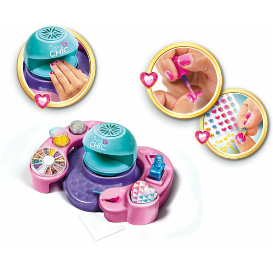 Um estúdio real para criares a mais perfeita nail art para um look super na moda! Esta fantástica máquina seca o verniz em pouco tempo, dando um look verdadeiramente único às tuas unhas! Contém muitos vernizes coloridos, limas, glitter e uma seleção de decorações para unhas. Um jogo que encoraja a criatividade e desenvolve a destreza manual com a ajuda do ramo da beleza.