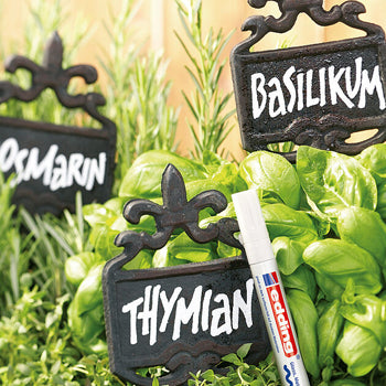 Independentemente da superfície, seja ela lisa como o vidro, áspera como o ferro de uma chave inglesa ou brilhante como a laca polida, pode marcar tudo com o marcador de tinta edding 750. Com a sua tinta tipo laca altamente opaca, é especializada na etiquetagem de muitos tipos de materiais, mesmo os escuros, tornando-se um marcador versátil não apenas para os entusiastas de bricolage.