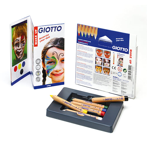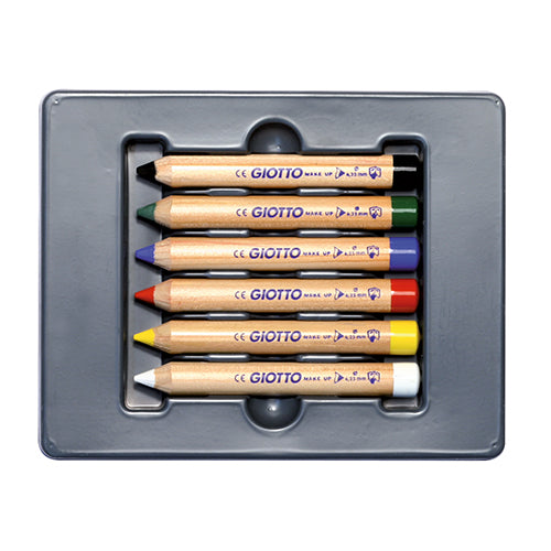 Lápis cosméticos super macios, ideais para criar desenhos na pele seguindo livremente a própria criatividade. A mina grande (6,25mm) permite criar efeitos sombreados mesmo nas áreas mais amplas. De grande duração e não quebram. Fabricados com cera natural de abelha, sem glúten e dermatologicamente testados. Não é necessário aplicar hidratante previamente. Não testado em animais. Guardar em lugar fresco e seco abaixo de 35º. A embalagem contém 6 cores e um folheto com instruções.