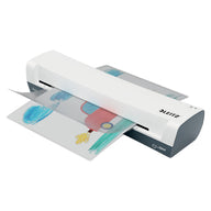 Leve e compacta, a Plastificadora Leitz iLAM Home A3, leva estilo ao ambiente da sua casa. Plastificações desde cartão de identificação até tamanho A3. Pode plastificar até 2 bolsas de 125 mícrons e protege os seus documentos com um acabamento perfeitamente liso. Plastifica até 10 bolsas em 10 minutos. Aproximadamente 60 segundos para plastificar folhas A4 de 2x75 mícrons. Tempo de aquecimento rápido, pronta para utilização em apenas 3 minutos. Plastificação num único passo sem complicações, com um simples interruptor para seu o funcionamento. Alavanca de desbloqueio, que permite remover manualmente bolsas encravadas ou enroladas. Inclui um pacote inicial de 5 bolsas de plastificação A4 UDT (2 x 80 mícrons). Cor: Branco / Cinza Dimensões: 441 x 90 x 100 mm