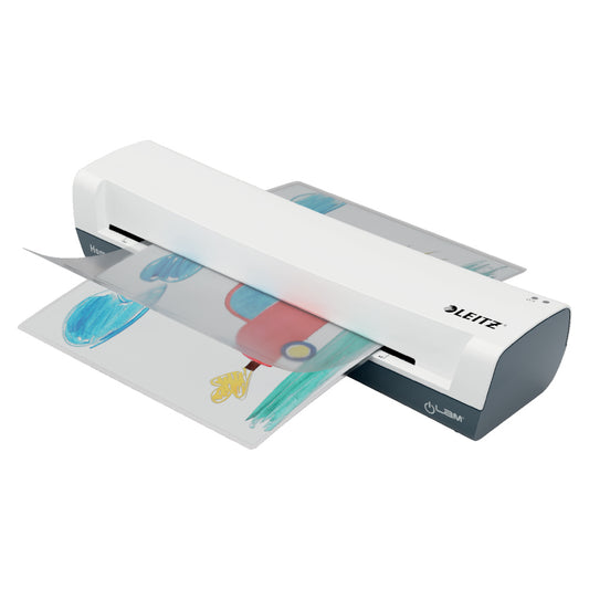 Leve e compacta, a Plastificadora Leitz iLAM Home A3, leva estilo ao ambiente da sua casa. Plastificações desde cartão de identificação até tamanho A3. Pode plastificar até 2 bolsas de 125 mícrons e protege os seus documentos com um acabamento perfeitamente liso. Plastifica até 10 bolsas em 10 minutos. Aproximadamente 60 segundos para plastificar folhas A4 de 2x75 mícrons. Tempo de aquecimento rápido, pronta para utilização em apenas 3 minutos. Plastificação num único passo sem complicações, com um simples interruptor para seu o funcionamento. Alavanca de desbloqueio, que permite remover manualmente bolsas encravadas ou enroladas. Inclui um pacote inicial de 5 bolsas de plastificação A4 UDT (2 x 80 mícrons). Cor: Branco / Cinza Dimensões: 441 x 90 x 100 mm
