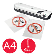 Esta laminadora de papel é fácil de utilizar com um único interruptor e tem um tempo de aquecimento rápido de 4 minutos.