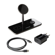 Equipado com um cabo USB-C e um adaptador de carregamento rápido, o carregador magnético sem fios 3 em 1 oferece uma potência de carregamento até 15 watts.