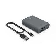 Hama Power Pack "Supreme 10HD", 10000mAh. O powerbank assegura a alimentação de energia em viagem; o carregador móvel carrega até três dispositivos em simultâneo. O carregamento otimizado protege a bateria, prolongando, assim, a vida útil do telemóvel, tablet e afins. Pilhas com certificação para a qualidade máxima e o carregamento seguro: proteção contra sobrecarga, sobretensão, sobreaquecimento e curto-circuito. Pequeno e leve: o powerbank cabe em qualquer bolsa e mala de cabine. Compatibilidade máxima com todos os telemóveis, tablets e outros aparelhos, p. ex. smartwatch, câmara digital ou auscultadores por Bluetooth. ENERGIA: Connection (Output) 1 / Voltage 1 / Current Strength 1: USB-C-coupling / 5 V / 3 A | Connection (Output) 2 / Voltage 2 / Current Strength 2: USB-Typ-A-Coupling / 5 V / 3 A | Connection (Output) 3 / Voltage 3 / Current Strength 3: USB-Typ-A-Coupling / 5 V / 3 A | Tipo de Pilha: Integrated Li-Polymer-Battery. CONETIVIDADE: Entrada da Ligação: USB Micro B Socket, USB-C-coupling | Ligação Saída: USB-C-coupling, USB-Typ-A-Coupling | Número de Saídas: 3. PROPRIEDADES: Capacidade: 10000 mAh | Upload Speed: Fast Charge. MEDIDAS: 65 x 22 x 92 mm | 201g. Componente 1: USB-Type-C-Cable