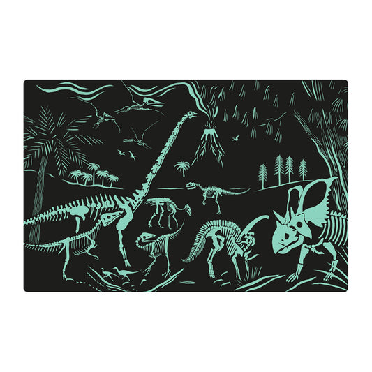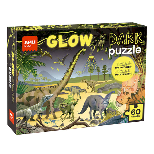 Puzzle fluorescente modelo dinossauros "Glow in the Dark". Inclui 60 peças de 6 x 6 cm.