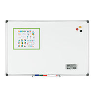 O Bi-Office criou a mais ampla gama de quadros brancos fáceis de usar para dar vida às suas reuniões, aulas, conferências e sessões de formação. O quadro branco com moldura de alumínio Bi-Office Maya é perfeito para escrever notas e mensagens curtas. A superfície magnética de limpeza a seco deste quadro branco é perfeita para escrever, apagar e reescrever informações, bem como para colocar notas com ímanes e para melhorar as suas apresentações. Moldura fina de alumínio anodizado O porta-canetas de alumínio prende-se simplesmente à estrutura em qualquer posição Fixações de parede fornecidas Magnético Superfície: Aço Lacado Moldura: Alumínio Medidas: 1800 x 1200 mm