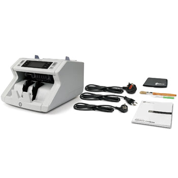 Contagem de 1.000 notas/minuto. Adequado para todas as unidades monetárias
