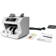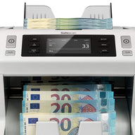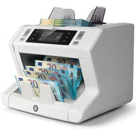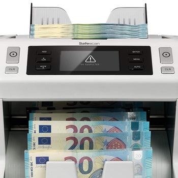 Conta 1.500 notas/minuto. 10 divisas predefinidas