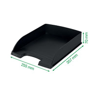 Tabuleiro de documentos premium e apelativa, fabricada com mínimo de 90% de plástico reciclado pós-consumo, adequada para formato A4. 100% reciclável, fabricado com mínimo de 90% de plástico reciclado (pós-consumo) e certificada pelo selo ambiental Blue Angel. Com a gama ecológica Leitz Recycle, pode melhorar tanto o ambiente do seu escritório como o meio ambiente do nosso planeta Ideal para organizar documentos A4 e US Letter, revistas e pastas Abertura frontal ampla, garantindo fácil acesso ao conteúdo mesmo quando empilhado Pode ser empilhado verticalmente ou em degraus Superfície lisa e fácil de limpar Resistente e durável, com acabamento mate Fabricado na Europa Apenas etiqueta - sem desperdício adicional de embalagens Medidas: 255 x 70 x 357 Cor: Preto