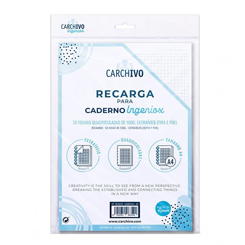 Folhas de reposição para caderno Ingeniox com 50 folhas de papel de qualidade extra 100 gr.