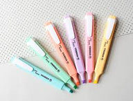 Para destacar mensagens sobre papel normal, térmico e autocopiativo. Tinta universal à base de água. Alta fluorescência. Tampa de rotação clip. Marcadores cores pastel