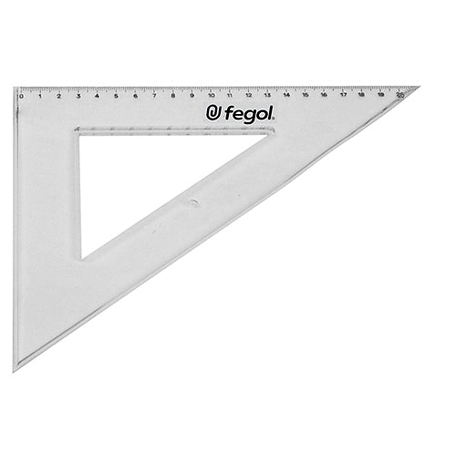 Esquadro em poliestireno transparente com graduação lateral(apenas em 1 dos lados)