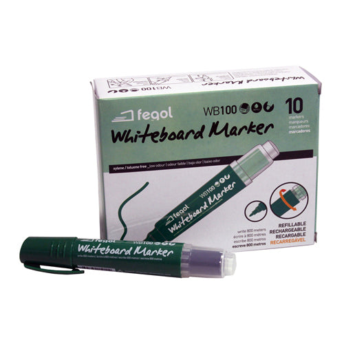Marcador Quadro Branco Verde Recarregável Fegol - 10un.