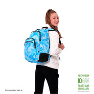 Mochila Escolar Rayol, produzida em material eco-friendly RPET, com 33 x 44 x 13,5 cm e capacidade para 20 litros. Concebida para distribuir o peso adequadamente, costas ergonómicas e acolchoadas e alças em forma de "S" para maior conforto também acolchoadas. Com reforço em borracha nos cantos inferiores e bolsos laterais para garrafas. Tem 2 compartimentos com bolsa para portátil e dispõe de 2 bolsos sendo 1 com porta-chaves removível. Tem fecho de correr nos dois sentidos. Idades: 8 a 12 anos