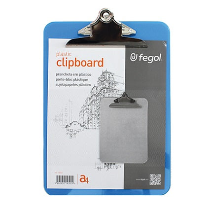 Prancheta em plástico rígido de boa qualidade.